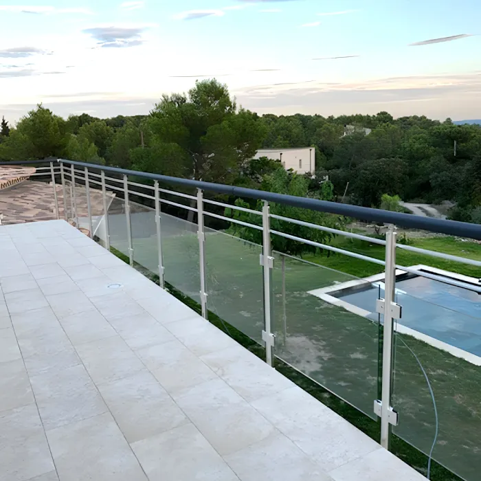Description de la balustrade sur mesure Prague 5 lisses La balustrade aluminium à cinq lisses rondes Prague offre une sécurité optimale tout en laissant passer la lumière et en préservant la transparence visuelle. Solide et élégante avec ses...