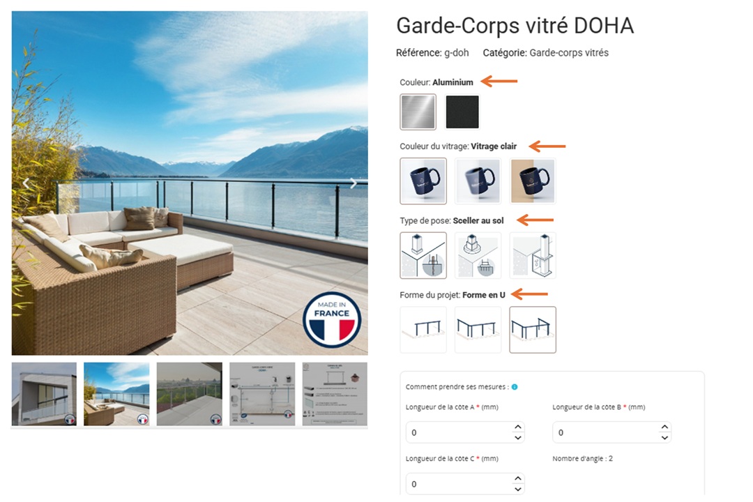 Configurez votre garde-corps étape par étape en quelques clics