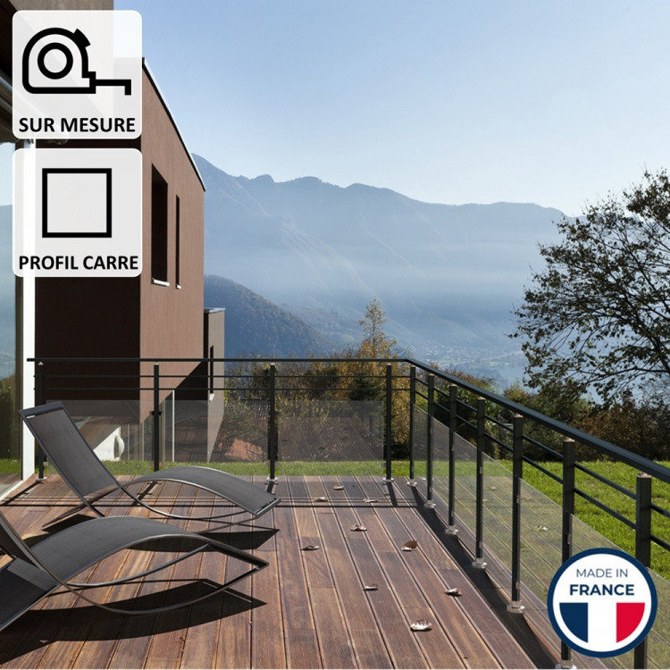 Le garde-corps aluminium semi-vitré Managua respecte toutes les normes NF de sécurité françaises. Sa hauteur minimale est de 1,10 mètre avec une partie pleine de 45 cm pour empêcher l'escalade des enfants[1]. Le vitrage feuilleté et trempé de 8 mm certifié sécurit garantit une résistance maximale aux chocs et aux intempéries, assurant une protection optimale pour votre famille.