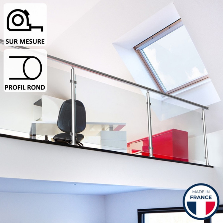 Garde-corps en aluminium vitré rond, sur mesure, TRIPOLI